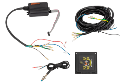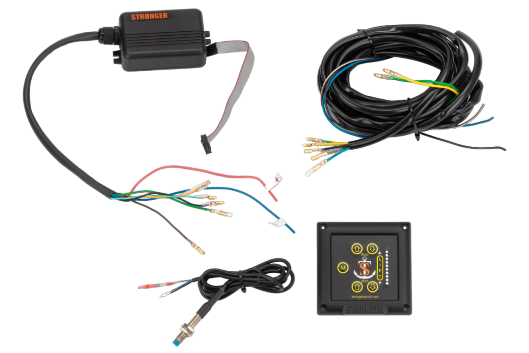 Панель управления гидравлического подъёмника Stronger — это электронная панель для контроля гидравлического подъёмника подвесного лодочного мотора. Панель позволяет полностью поднимать и опускать подъёмник с помощью специальных кнопок, а также шаг за шагом регулировать его положение. При каждом нажатии кнопки «вверх» подъёмник поднимается примерно на 2 см. Самая важная функция — возможность сохранять любимую позицию в памяти устройства.