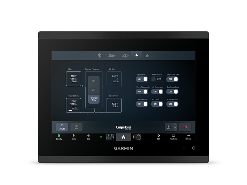Take command through digital system integrations to monitor, automate and control your vessel. The chartplotter uses the NMEA 2000® network to connect to your compatible accessories.